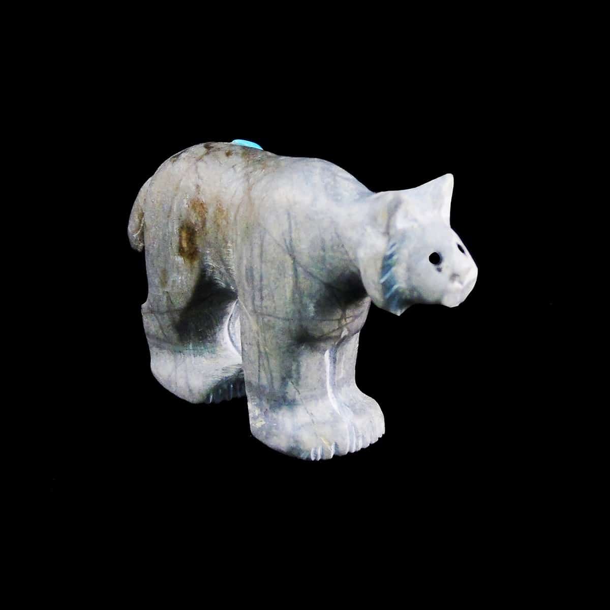 Zuni Fetishes are small carvings made from various materials such as bone, shells, and gemstones by the Zuni people. These carvings traditionally serve a ceremonial purpose for their creators and depict animals and icons integral to their culture. Each animal has great significance and meaning, many with protective abilities or healing powers. Fetish carvings are believed to have magical powers and protect or enhance the owner or craftsman. It is presumed to properly care for Zuni Fetishes that they should be given offerings of cornmeal and kept in special turquoise encrusted fetish pots or pouches. The Zuni also divided the world into six regions or directions: north, west, south, east, above, and below. Each direction is represented by a Prey God, or guardian animal, and are listed as follows: north – the yellow mountain lion, west – the black bear (represented by the color blue), south – the red badger, east – the white wolf, above or the sky – the multi-colored eagle, below or underground – the black mole. These directional animals are among the most powerful and are the guardian and masters of their region. Collectors worldwide collect fetishes as a form of contemporary Native American art with an appreciation for the craftsmanship and meaning behind each fetish. The meaning of each is provided within the product. However, over time many carvers started to create some non-traditional animals due to requests, region, and popularity. These non-traditional fetishes may not have the significance or abilities of other more traditional fetish carvings.